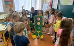 На ранковій зустрічі діти грали цікаву гру «Світлофор» разом із казковим героєм.